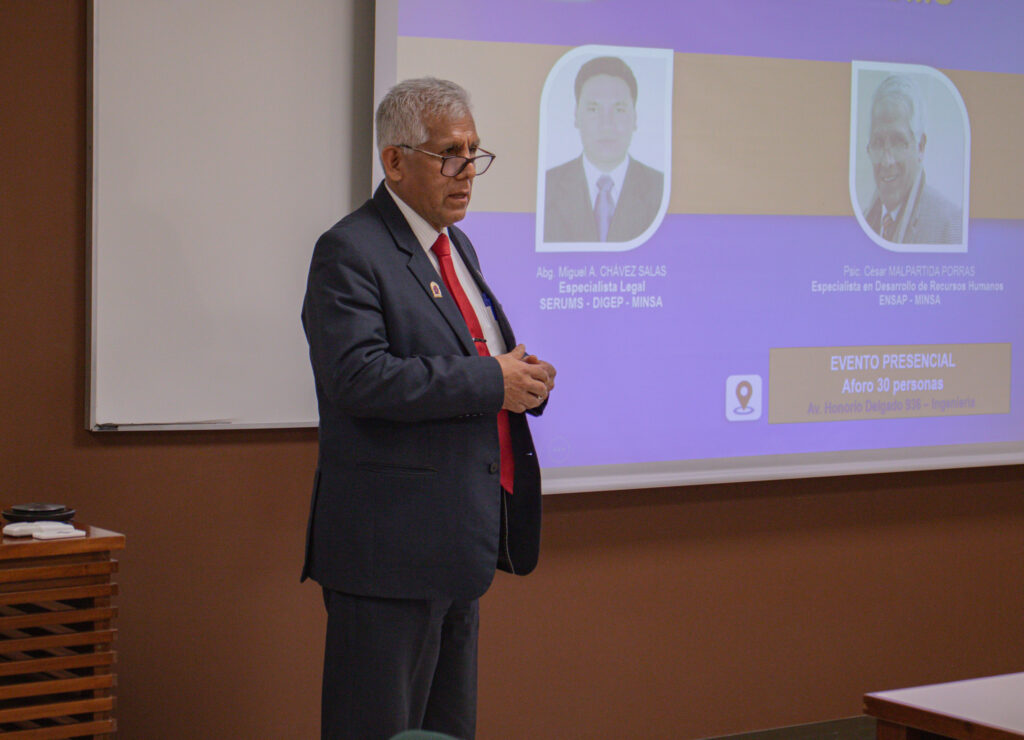 El Dr. Wilfredo Gonzáles Lozada, decano de ambas facultades, dio la bienvenida resaltando la importancia de este servicio en la salud pública nacional. La sesión contó con la participación de expertos del Ministerio de Salud (MINSA) como César Malpartida y Miguel Chávez, quienes expusieron sobre la Ley SERUM N.° 23330 y su reglamento, el Instructivo SERUMS, y la Norma de Evaluación del programa.
