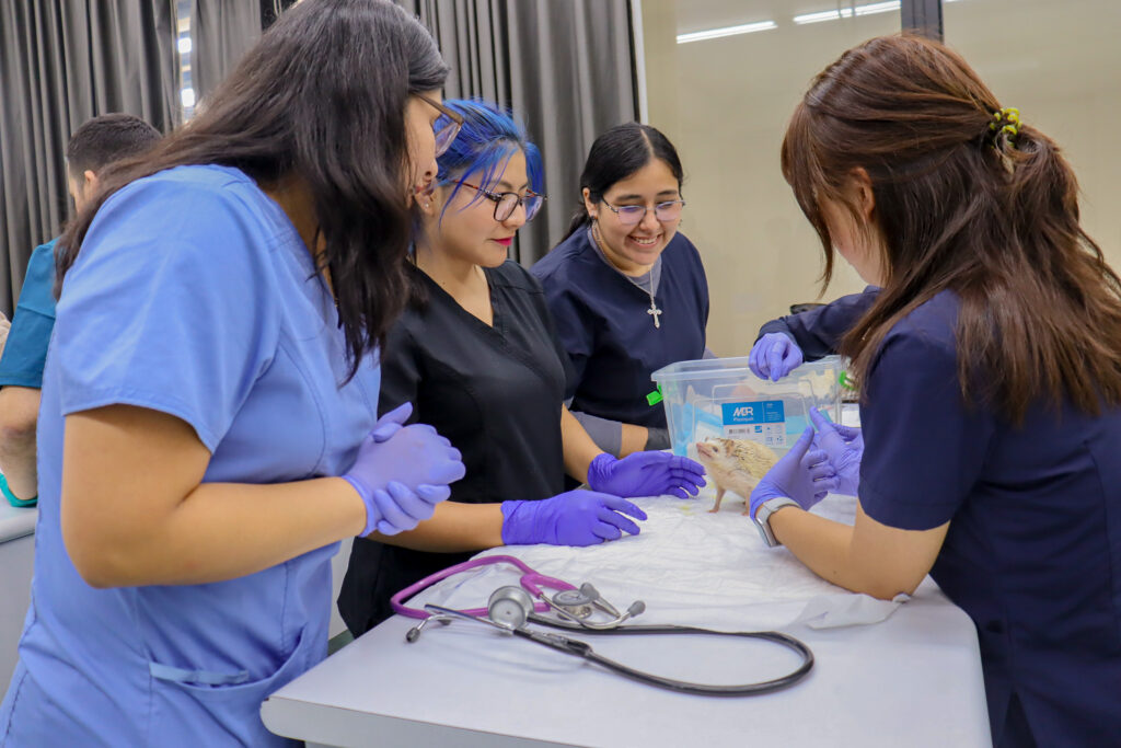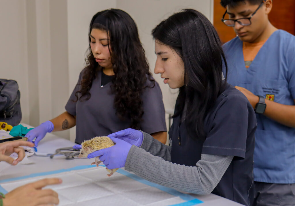 Los participantes tuvieron la oportunidad de conocer de cerca el comportamiento y las particularidades anatómicas de especies como los erizos enanos africanos (Atelerix albiventris), hámster sirio (Mesocricetus auratus) y hurones (Mustela putorius furo) ), promoviendo una formación más consciente y respetuosa hacia los animales.